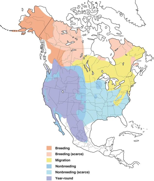 Golden eagles that breed in Alaska and Canada will migrate up to thousands of miles to wintering grounds. Southern pairs tend to be year-round residents. Leaving northern breeding grounds will coincide with the first lasting snowfall, north winds, and decreasing prey availability. They are rarely seen in the eastern states.