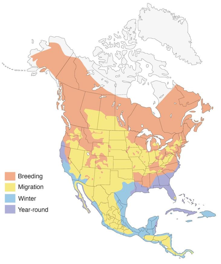 Most Osprey that breed in North American will migrate to Central and South America for the winter. These birds will typically migrate through broad areas in the west and interior eastern U.S. A few Osprey will winter in the southern states of the U.S. like Florida, California, and Texas.