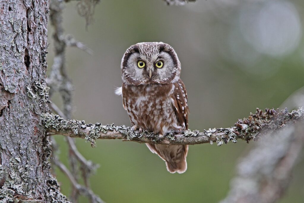 The males, females and juveniles all may give a quick chirp or “kew” sound year-round. The Boreal owls in North America (“Richardson’s owl”) can contain more notes and be slightly slower than those in Europe (“Tengmalm’s owl”).