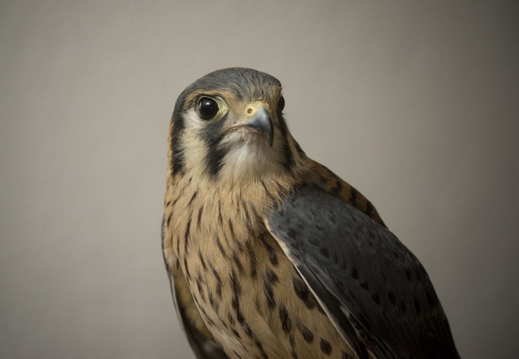 Holmes is an adult male American Kestrel, the smallest of the falcon species. He weighs about 4.5 oz., has a wingspan of 20”-22″.