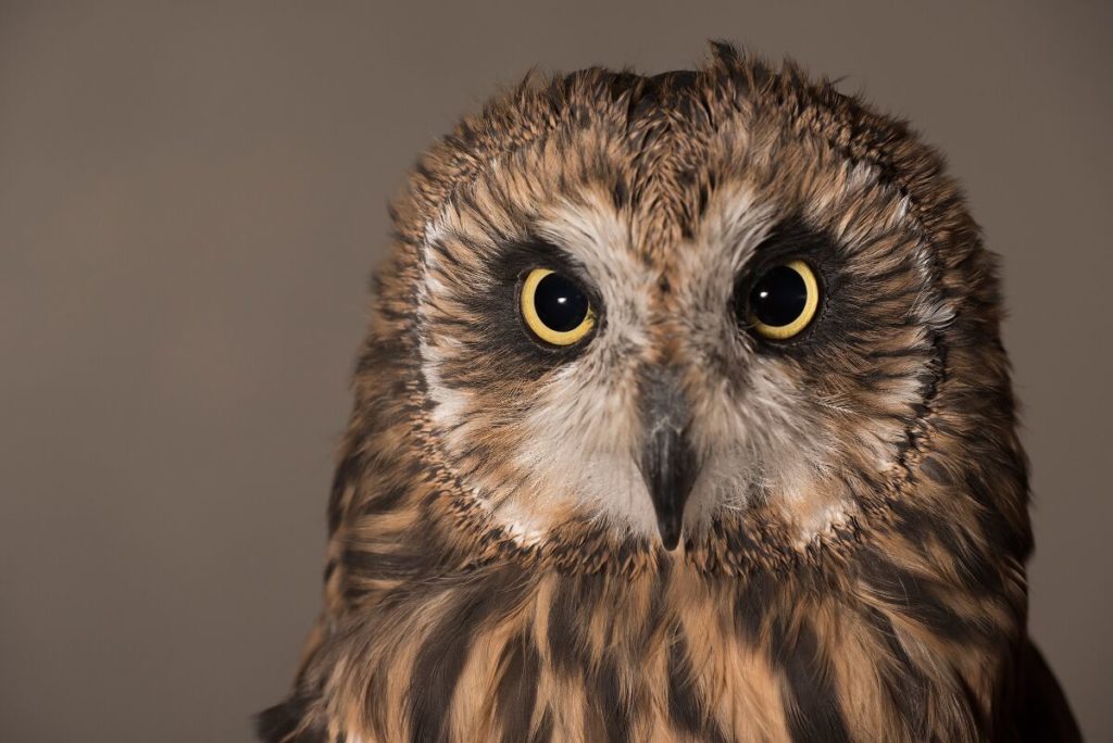 This open-country hunter is one of the world’s most widely distributed owls, and among the most frequently seen in daylight. Don’t look too eagerly for the ear tufts, which are so short they’re often invisible. More conspicuous features are its black-rimmed yellow eyes staring out from a pale facial disk. These birds course silently over grasslands on broad, rounded wings, especially at dawn and dusk. They use acute hearing to hunt small mammals and birds.