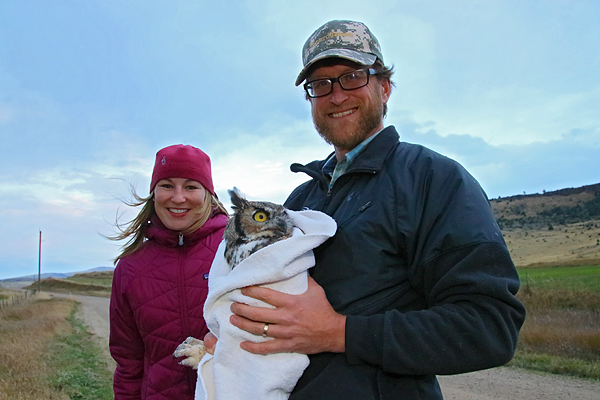 Brian and his wife, Krista, were headed back to town that evening after floating on the Upper Madison River when the bird flew directly in front of the car, hitting the headlights and bouncing off. “It came out of nowhere. We weren’t even sure what it was at first,” he recalls, noting earlier in the evening they had spotted two other great horned owls on the move as the sun was setting.