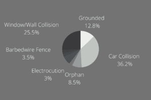Approximately 99% of our injury calls are due to human-caused issues including: lead poisoning, windshield collision, and shootings.