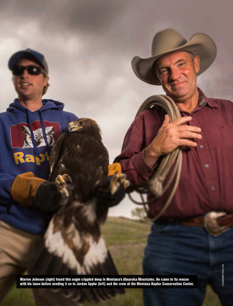 When outfitter Warren Johnson came upon an injured golden eagle while chasing elk in the backcountry, his solution was simple: “I decided I would rope her.”